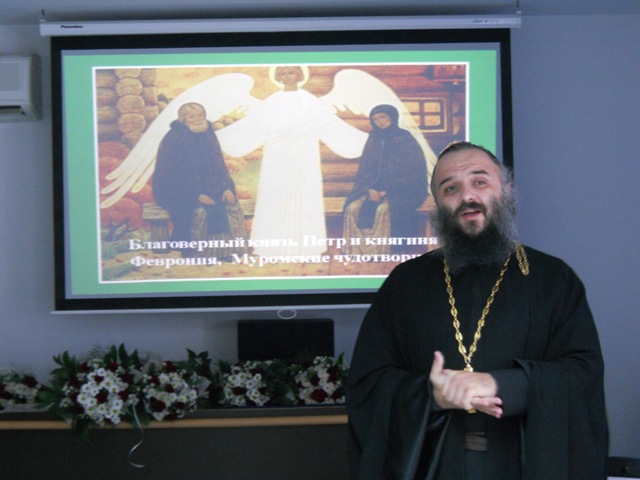 Председатель РНСА протоиерей Арсениий произнес речь, посвященную подвижникам Православной Церкви святым благоверным супругам Петру и Февронии, понесшим подвиг благочестивой семейной жизни. Также им было сказано слово о проблемах ювенальной юстиции.